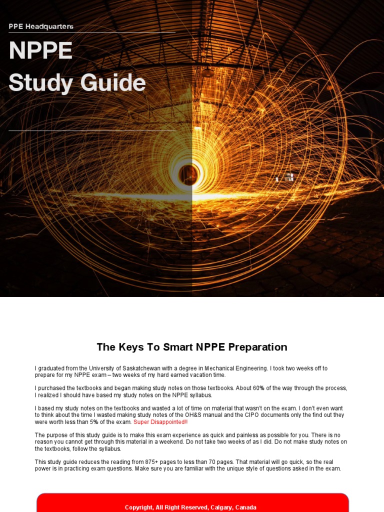 Our nppe exam simulator allows you to. Eligible applicants may write the nppe at any time within the time frame provided by peo as they acquire 48 months of engineering work experience required for licensure. It contains more detailed information than is presented here and is optimized for printing. Practice exam guide nppe cause own practice exam guide nppe djvu epub txt doc pdf formats we will be glad if you come back again study guide for ppe scribd 10 hour study guide for the professional practice exam by kim graves february 17 2009 this document suggests a 10 hour study plan for the professional practice exam.