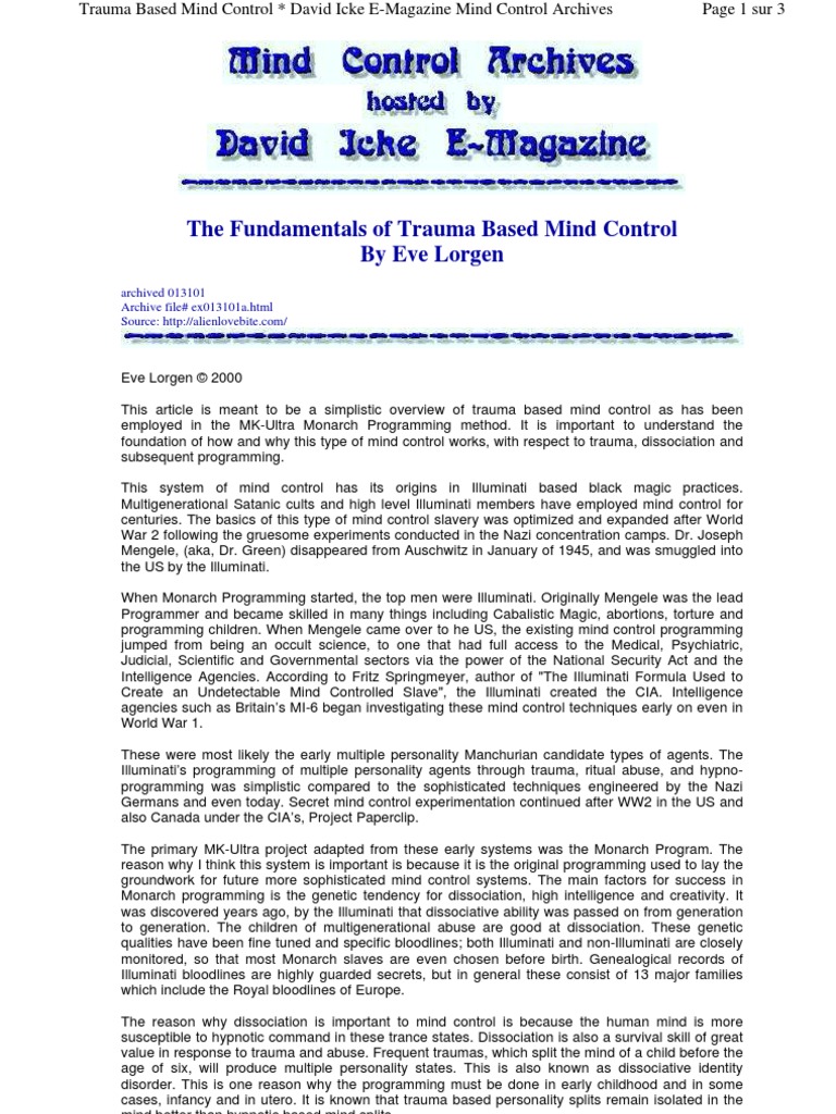 The Fundamentals Of Trauma Based Mind Control Psychological