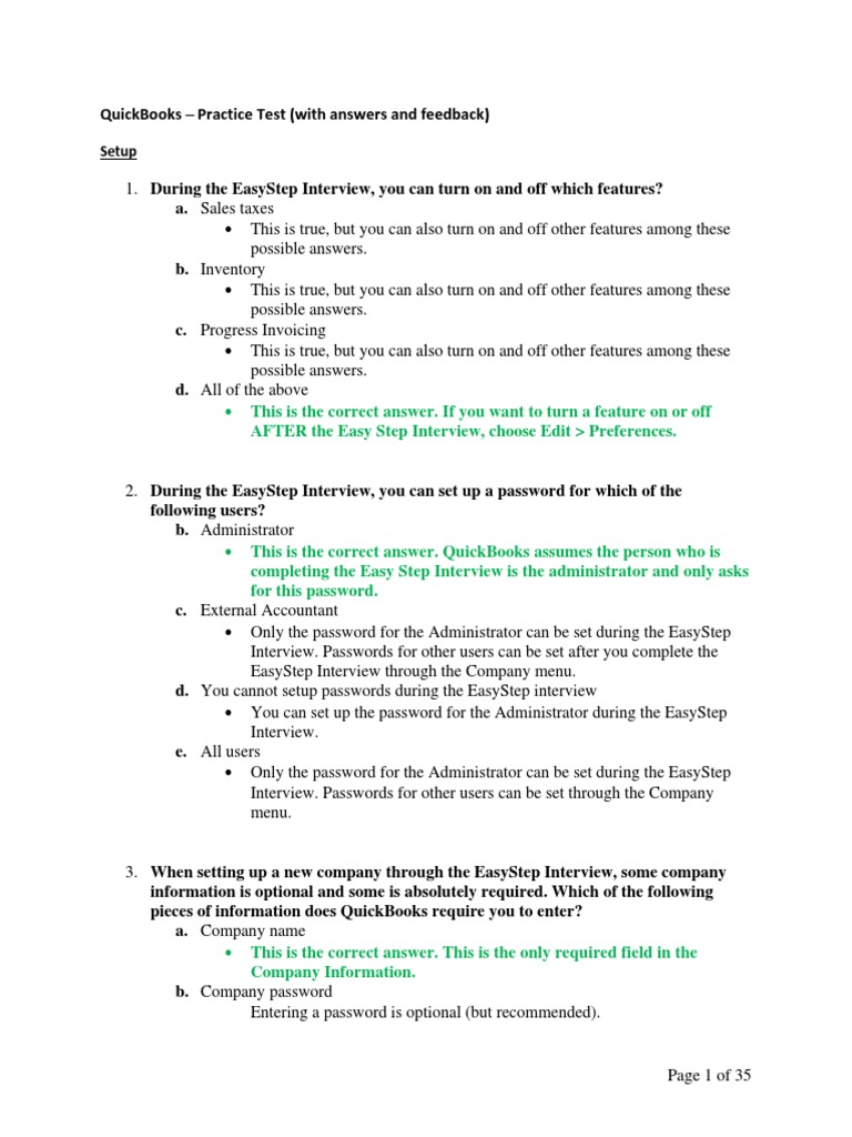 Qb Certification Exam Docx Review Answers Section 1 Submit