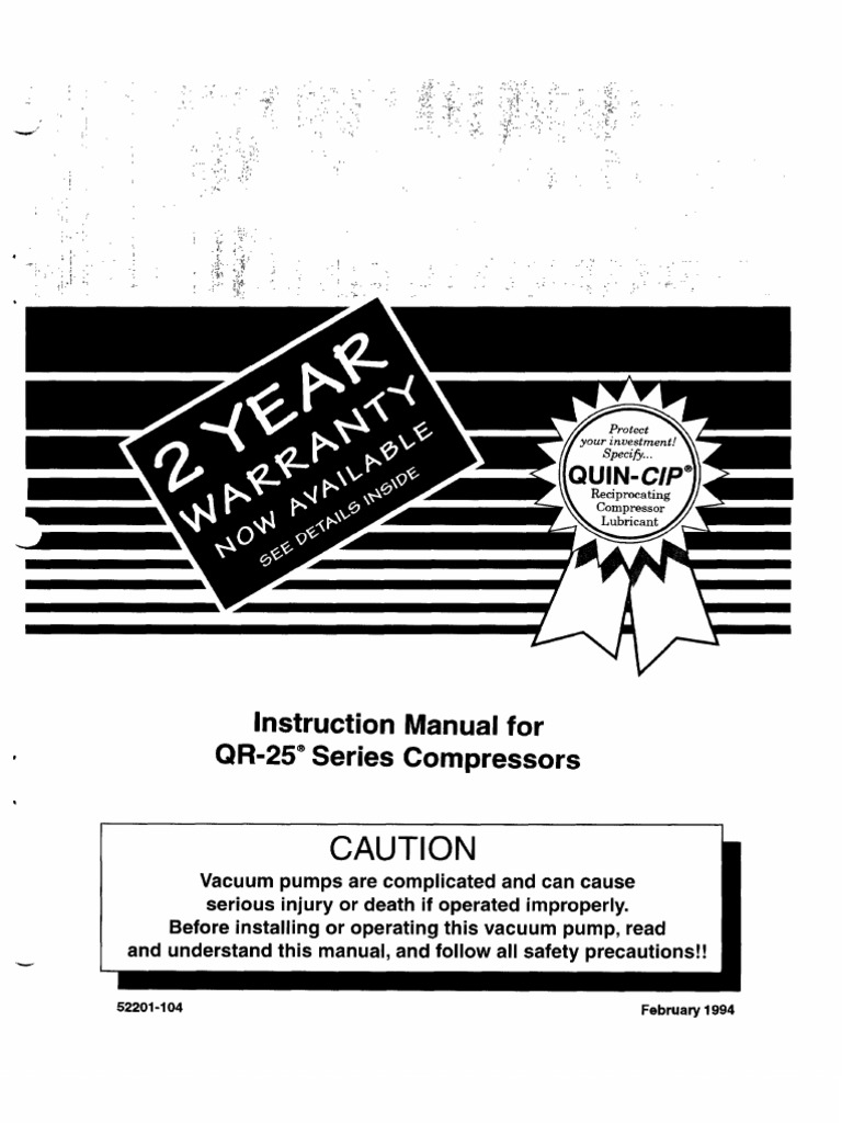 Do not operate this compressor without a totally enclosed belt guard or any other required safety equipment. Serial number the basic compressor serial number decal is. Model capacity qrng 216 1 qt 16 oz. Record of change no.