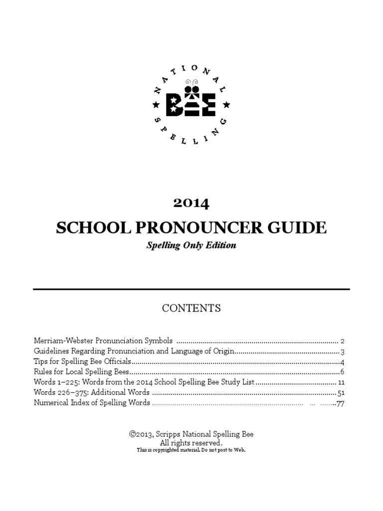 2015 District Pronouncer Guide Spelling Bee District