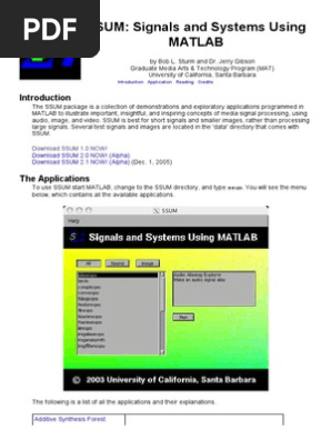 Signals And Systems Analysis Using Transform Methods And Matlab