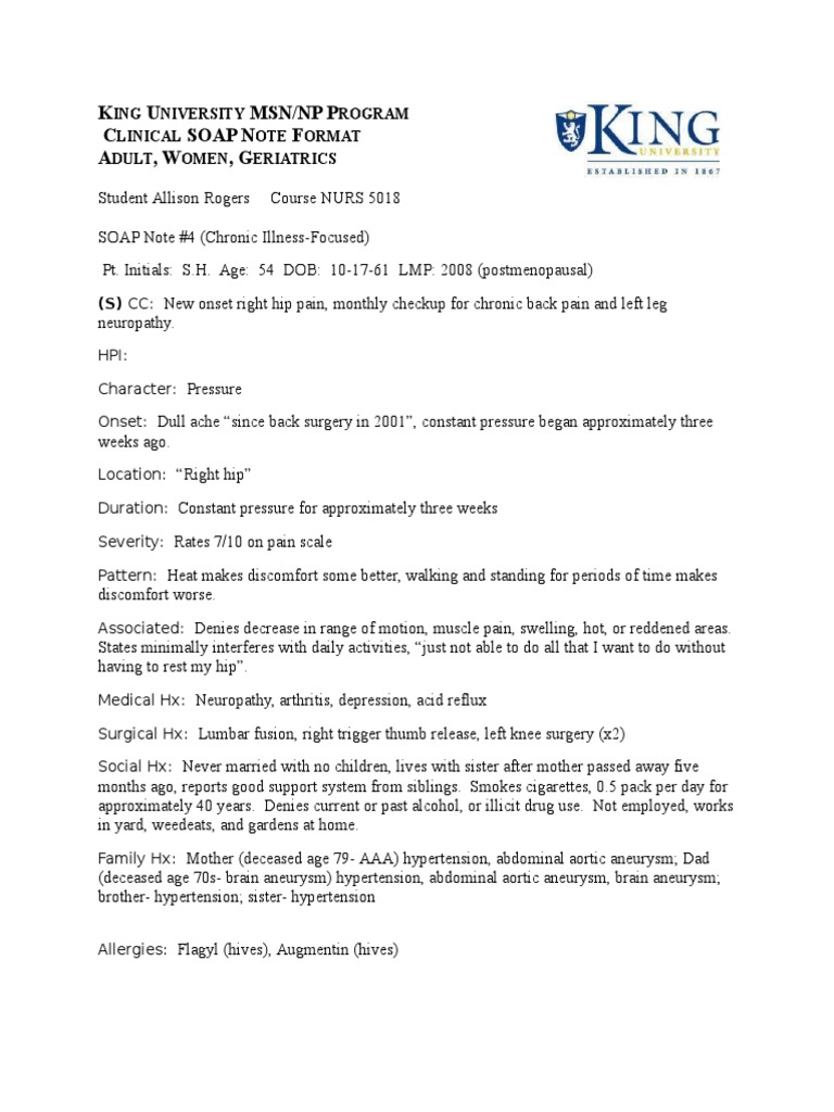 Clinical soap note geriatric heather curtis subjective data patient demographics. He reports that this started as a chest cold and he has been unable to recover at home. Lt is a 41 african american female single and never been married. However some signs and symptoms do occur as the disease progresses.