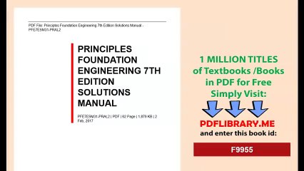 Httpsgooglrhzq8p principles of foundation engineering 8th edition pdf principles of foundation engineering 8th edition pdf free download pr slideshare uses cookies to improve functionality and performance and to provide you with relevant advertising. Solution manual for principles of foundation engineering 6th and 7th and 8th edition authors. Das with solution manual free pdf download table of contents solution chapter 1.