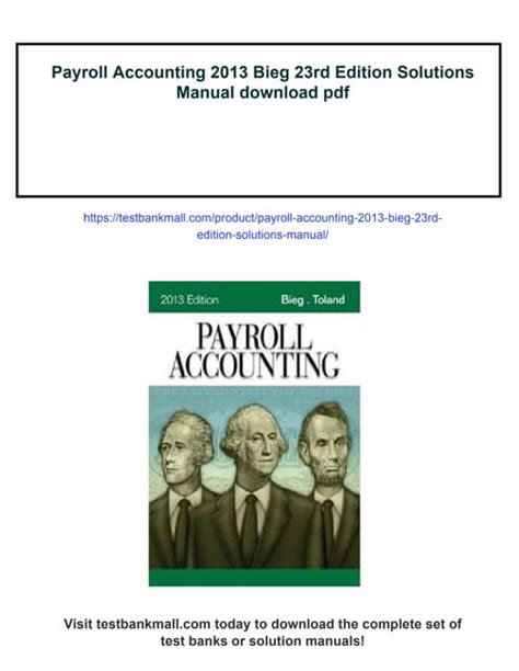 Solution manual for payroll accounting 29th edition bernard j. Readdownload file report abuse. Bieg and toland payroll accounting solutions manual. Test bank for payroll accounting 2019 29th edition by bernard j.